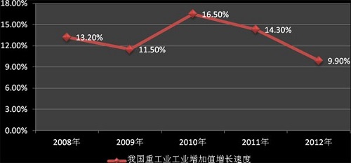 受到國際經(jīng)濟(jì)環(huán)境變動(dòng)的影響,我國重工業(yè)在迎來高速發(fā)展期之后,其行業(yè)增速于2012年初開始有所放緩,呈現(xiàn)增長下滑的態(tài)勢(shì),其主要的冶金礦山機(jī)械行業(yè)、物料搬運(yùn)設(shè)備行業(yè)、礦山機(jī)械行業(yè)等增長情況亦受到影響。